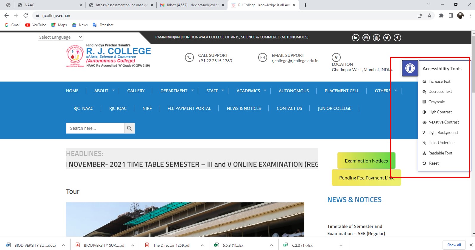 7.1.7 – The Institution has a disabled-friendly and barrier-free environment: (2020-21)AQAR 2020-21Photo of Ramps/lifts for easy access to classrooms and centresDisabled-friendly washroomsAssistive technology and facilities for persons with disabilities: accessible websiteOther Supporting DocumentsScribe Case LettersPolicy for inclusion of people with disabilities RJC Popular Lecture Series 8: Inspirations from challenged learners by Sushant & BhagyashreeRJC Popular Lecture Series 8: Inspirations from challenged learners by Sushant & Bhagyashree